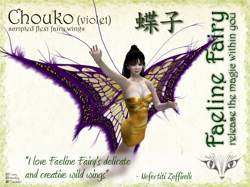| Chouko is the keeper of the morning hours. She flies out before sunrise setting the morning drew like tiny diamonds that shine bright in the morning light. Her wings, dainty, delicate, full of brilliant colors glide over nature in a graceful dance with nature's awakening. | |||||||||||||||||||||||||||||||||||||||||||||||||||||||||||||||||||||||||||||||||||||||||||||||||||||||||||||||||||||